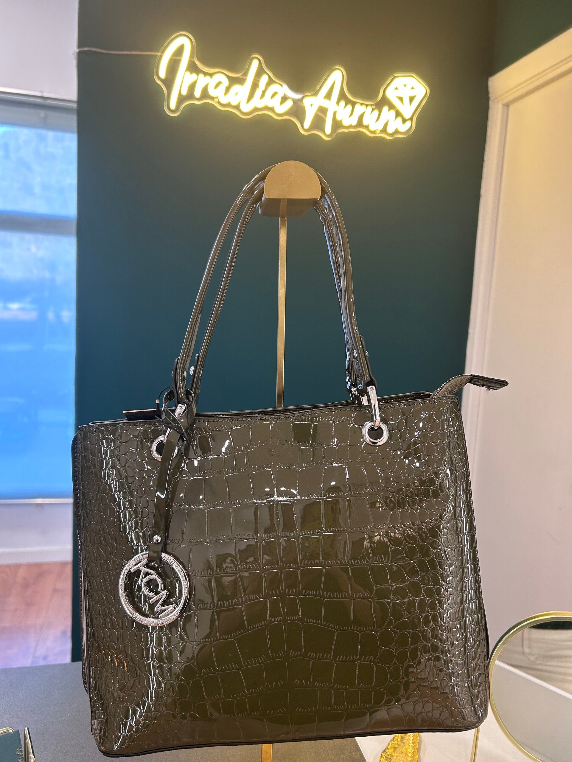 Este elegante bolso combina sofisticación y originalidad en un intenso tono verde que atrae todas las miradas. Su diseño único se realza con un delicado estampado cocido que aporta textura y profundidad, creando un juego de relieves que refleja la luz de manera sutil. Compacto pero espacioso, es perfecto para llevar tus esenciales con estilo, ya sea de día o de noche. Un accesorio versátil que convierte cualquier look en una declaración de moda.